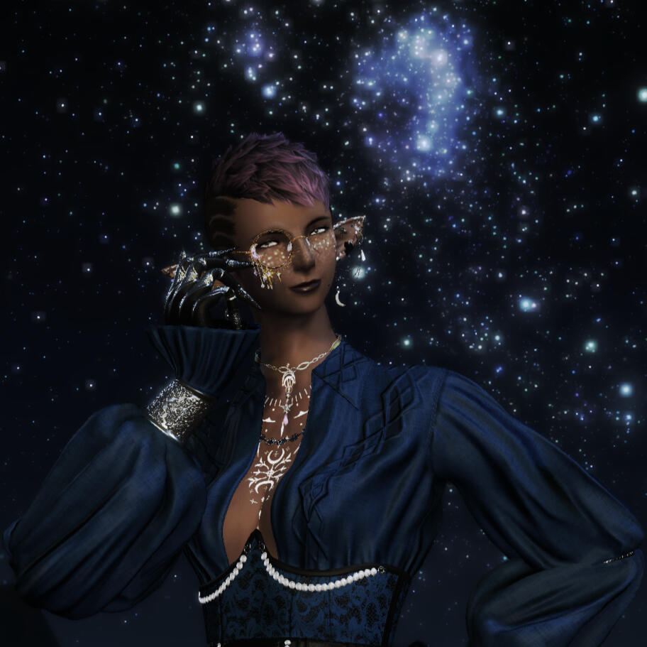 Born the only heiress of the Burwani Sharlayan family, there were a lot of expectations placed on Cyrene to enter the Studium, perfect her knowledge in Astrologian studies, and marry off to another powerful family to inherit a cozy life. She achieved none of this.For reasons she is always vague on, she quit the Studium, ran off to Ul'dah, and enrolled to learn Black magic instead. Her first foray into life outside the gilded walls of Sharlayan were not as successful as she had hoped, resulting her having to pick up an axe and learn to defend herself.It all ultimately led her to red magic, the perfect balance between magic and sword, an art that called to her. Measured, outside of politics and free from the chains of nation or family, she threw herself into it with gusto and has endeavored to become a master of the craft.She continued to tinker on the side, making a hobby of building and maintaining mechanisms, helping guilds and companies alike. She had no plans of ever going back to Old Sharlayan, but after taking a few commissions from the Ironworks Guild, she became a formal member in time to get involved with the scholars in Labyrinthos. She's now sporting the title of a Systems Aetherologist, using her aether studies and love of machines together, once more in perfect balance.